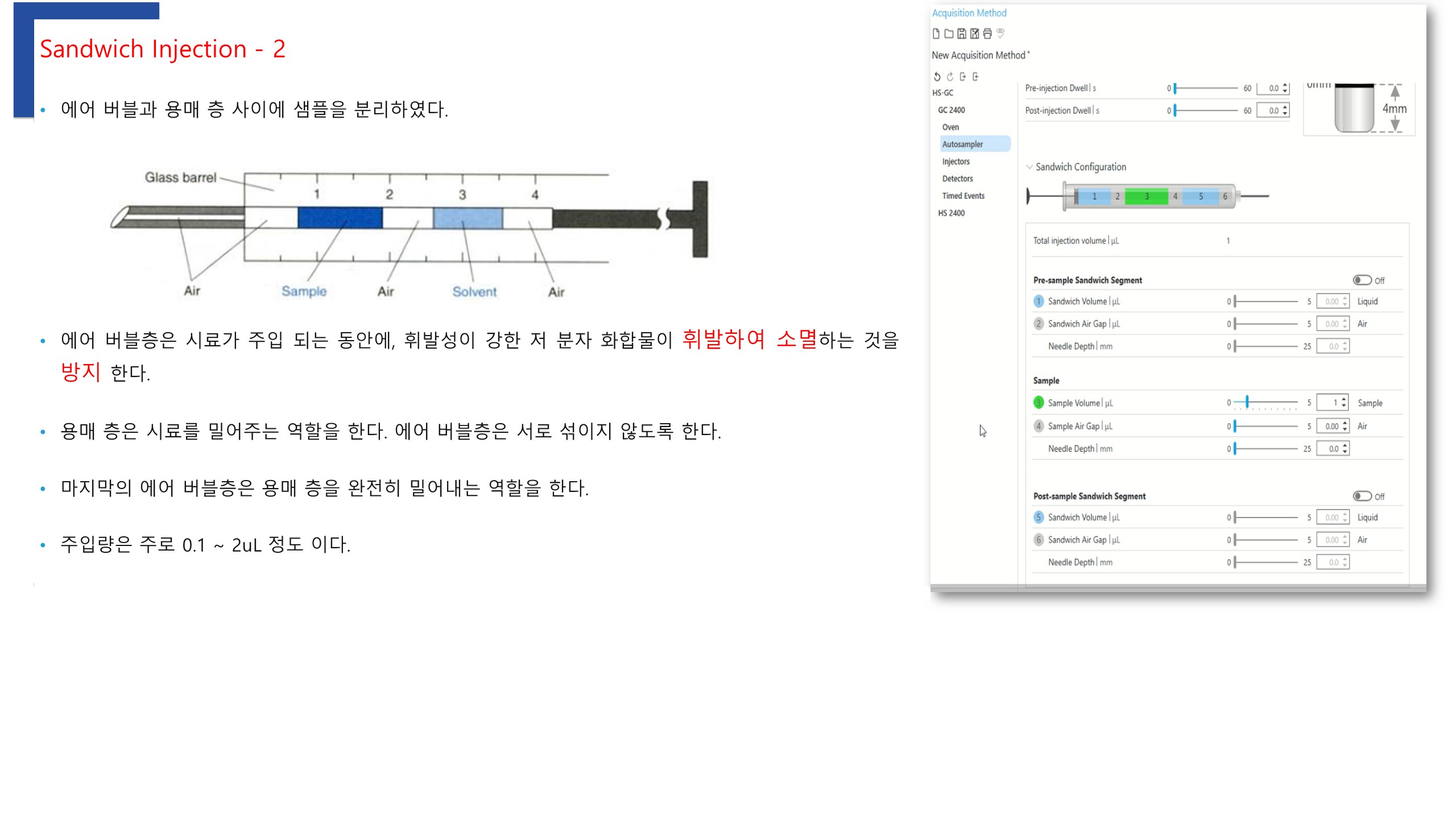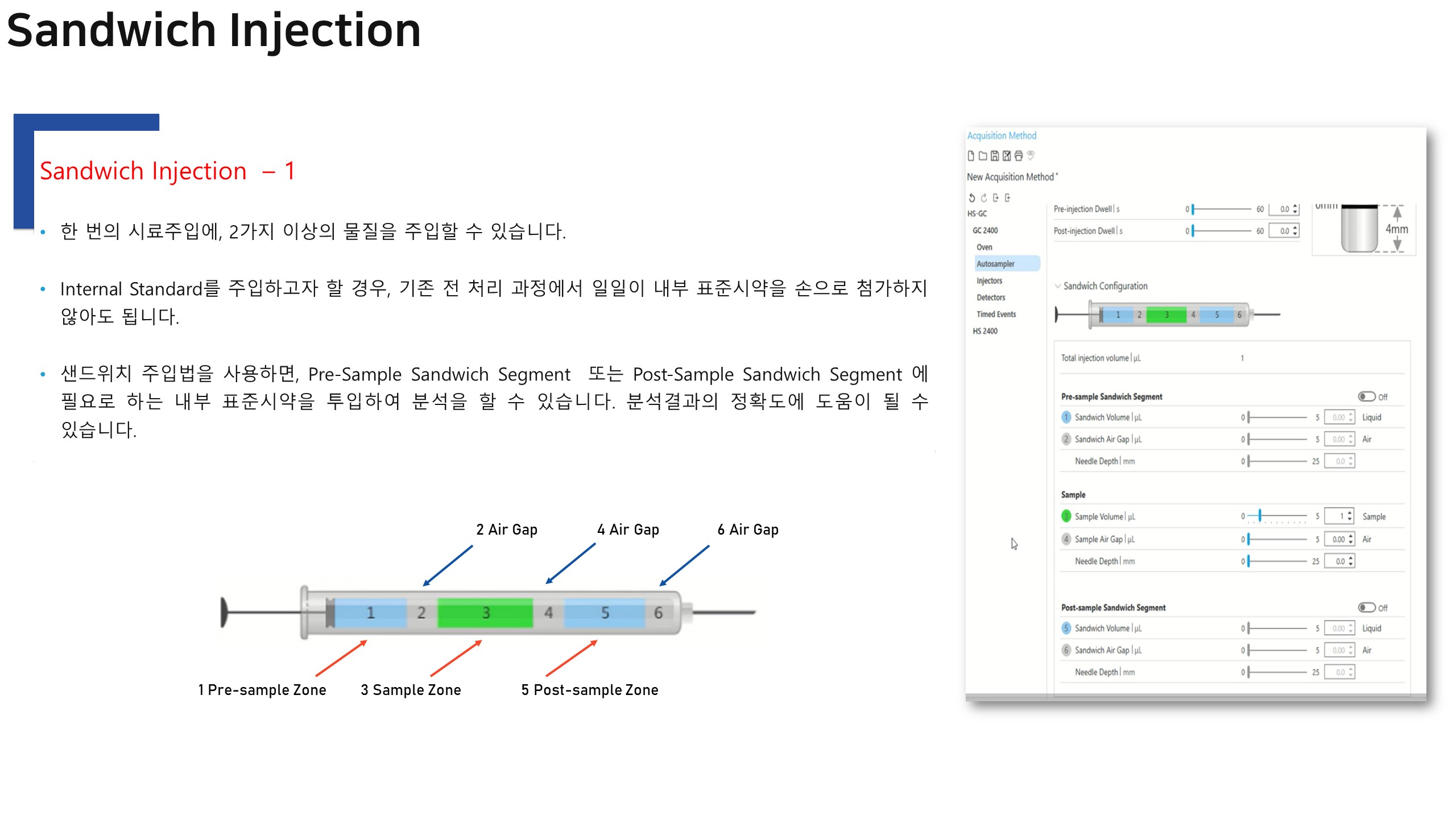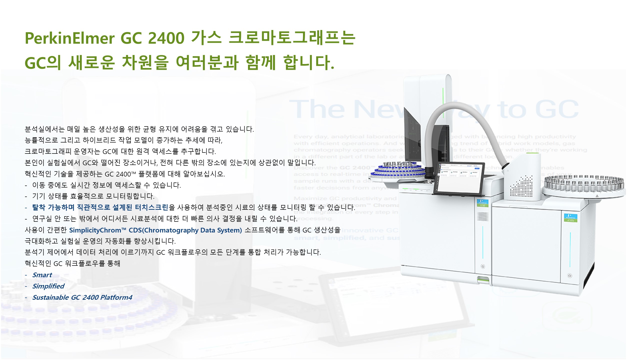 - 4채널 트레이 : 플러그 앤 플레이 방식의 액체 자동시료 주입기는 최대 4개까지의 트레이 제공으로 4명의 사용자가 1대의 GC으로 연속 분석이 가능.