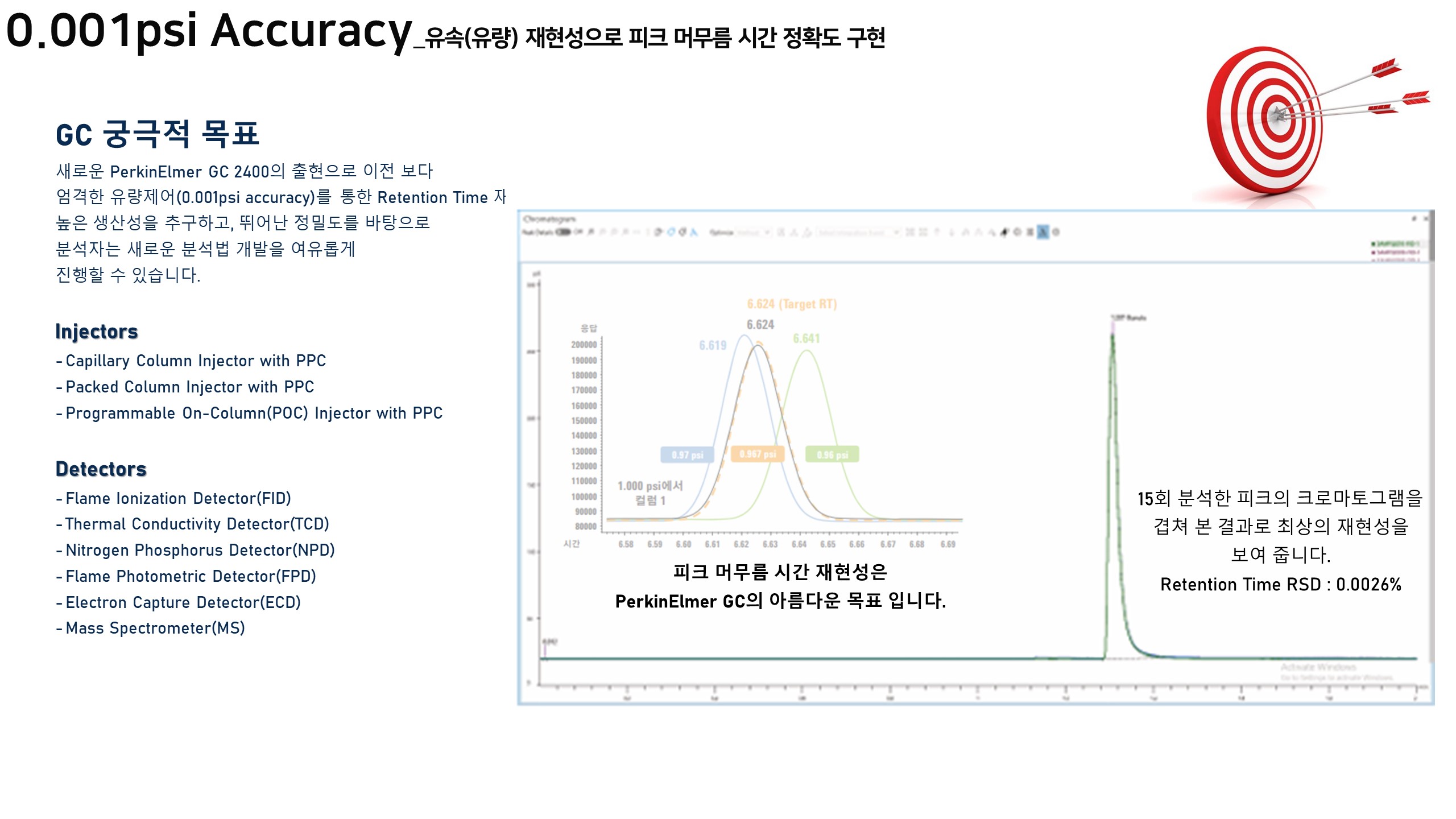 - 0.001psi 정확도 : 유속정밀도를 바탕으로 크로마토그램 중 피크 머무름 시간 재현성 확보